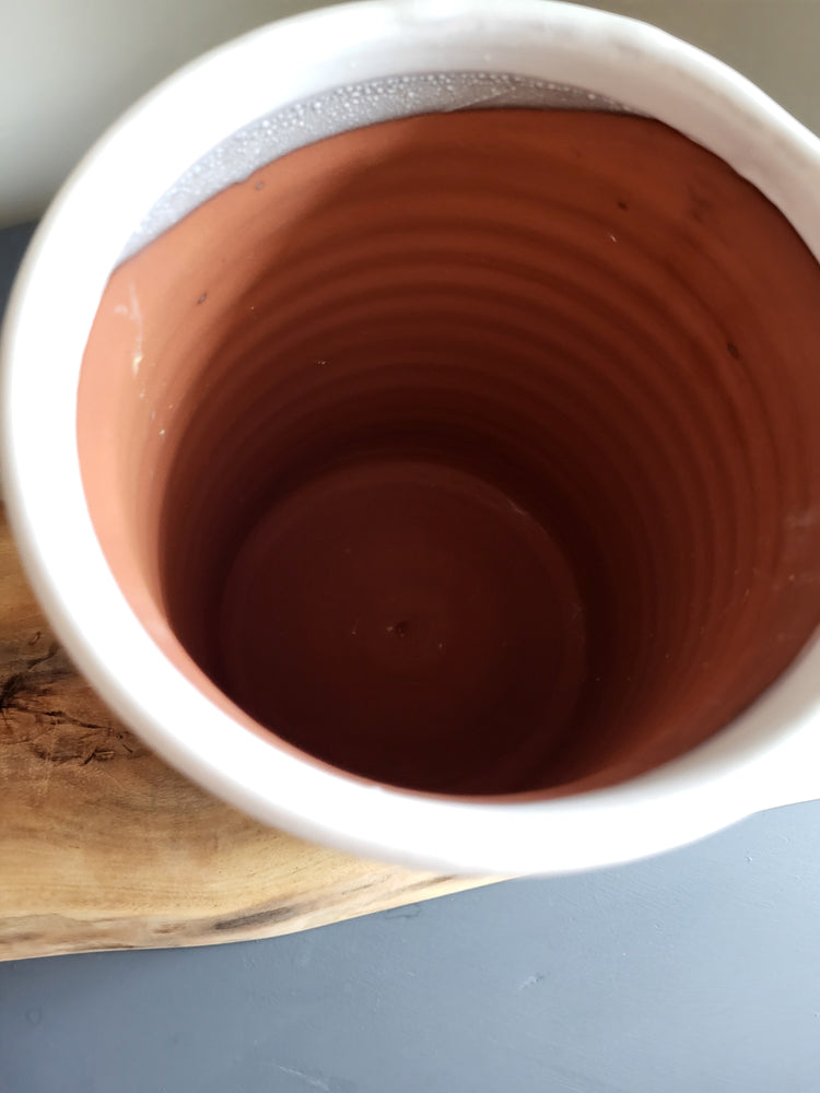 Terra cotta with white glaze ...the ultimate bloom vessel perfect for kitchen islands or dining room table display