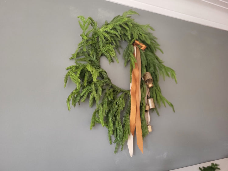 24" real touch Norfolk pine wreath // gorgeous to use with simple ribbon or as a table accent
